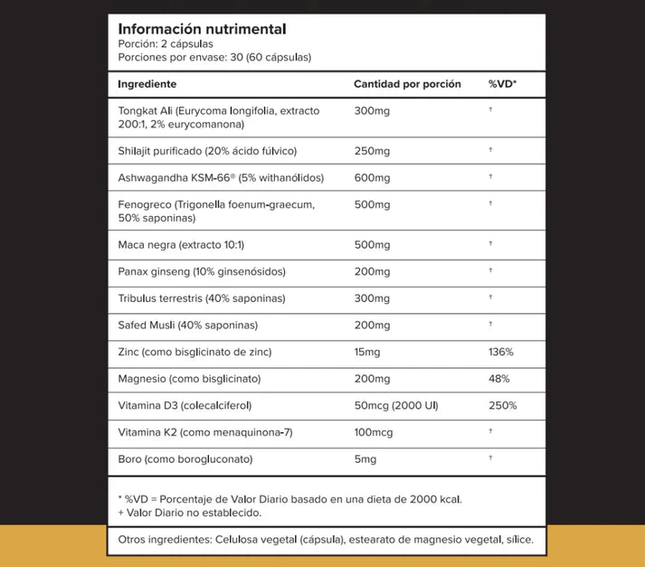 Contribuye al bienestar masculino, ayudando a mantener energía y confianza a lo largo del día.